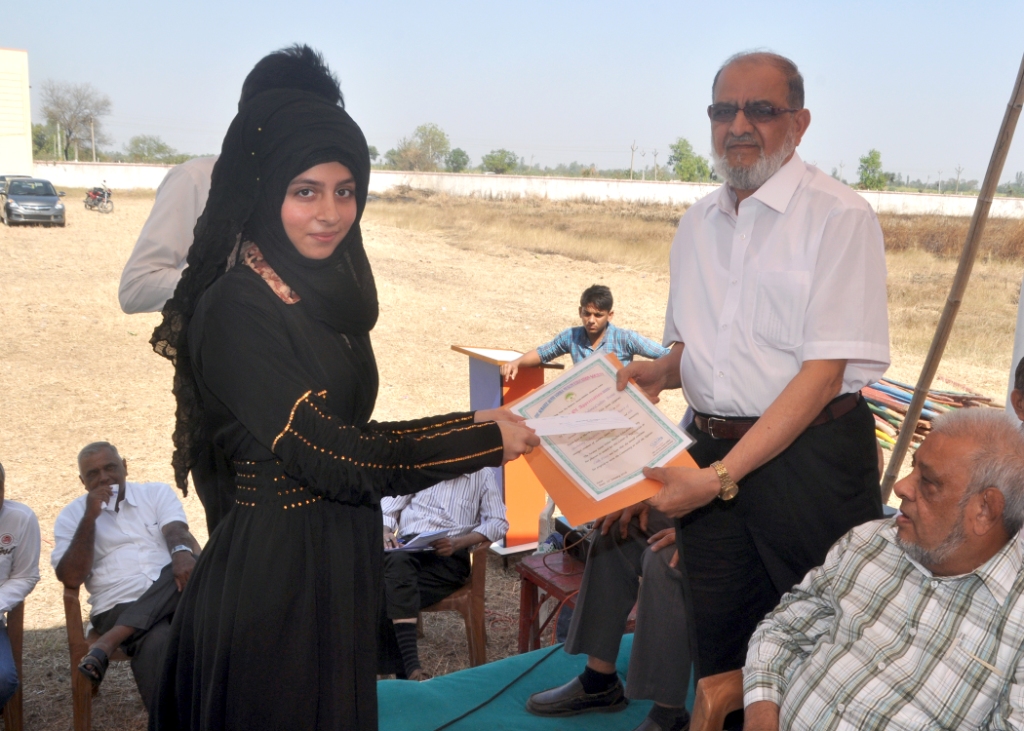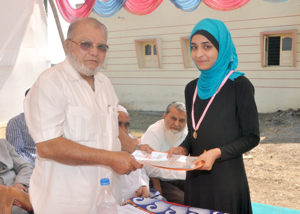 Khadija Muhammad Mehtar received cash reward and cerificate form Janab Ahmedbhai Unia. |