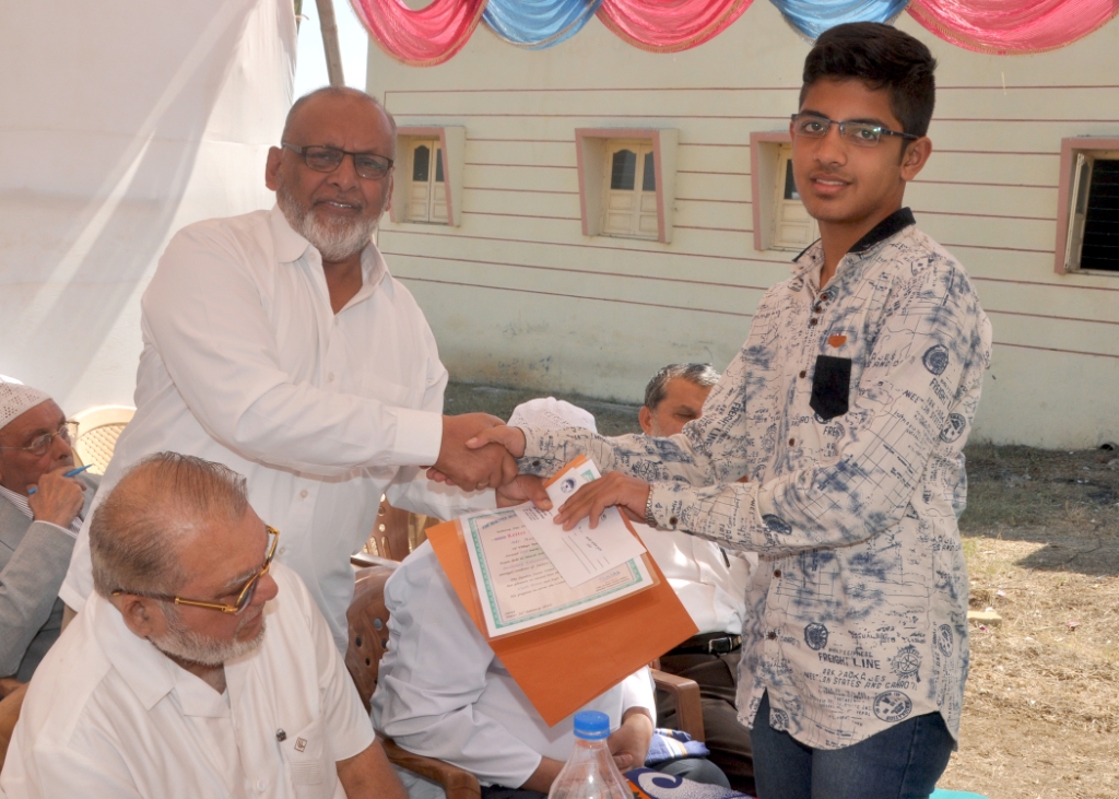 Amir Soyab Murad received cash reward and cerificate form Janab Gulambhai Lunat (U.K.) |