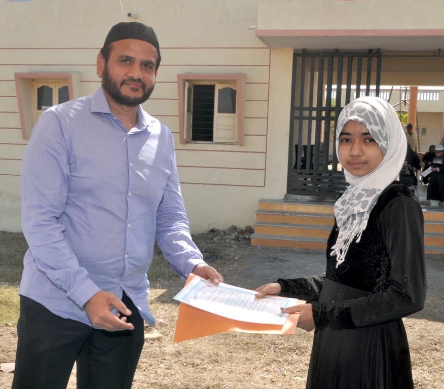 Mubassira Rashid Ughratdar recieved Marhum Fatemabahen Tili Medal from Mr. MuhammadAli Chamadiya (Canada). |