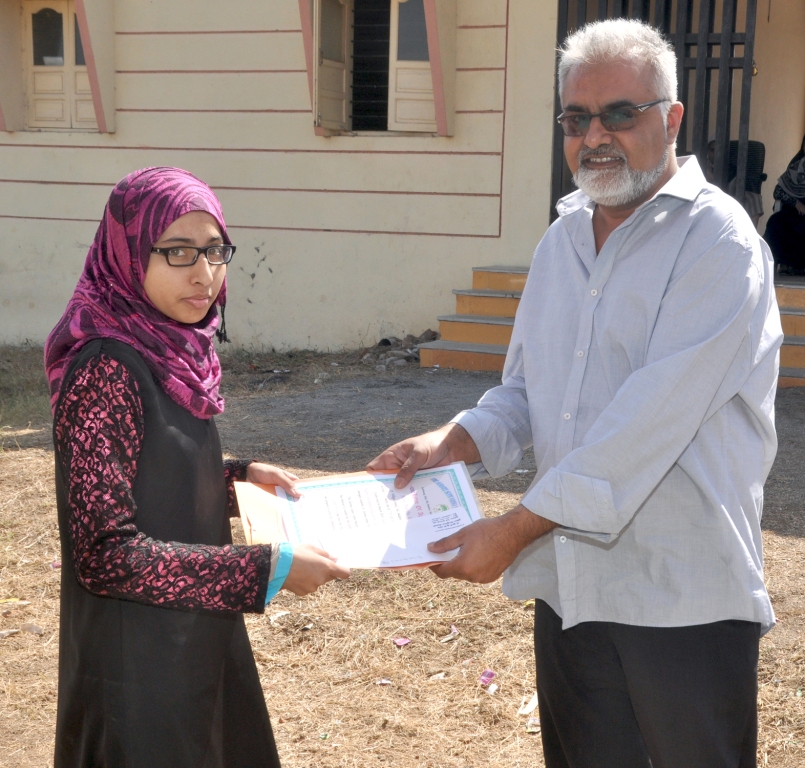 Sarminbanu Shabbir Bhaiyyat received cash reward and cerificate form Mr.Yusuf Tili (U.K.) |