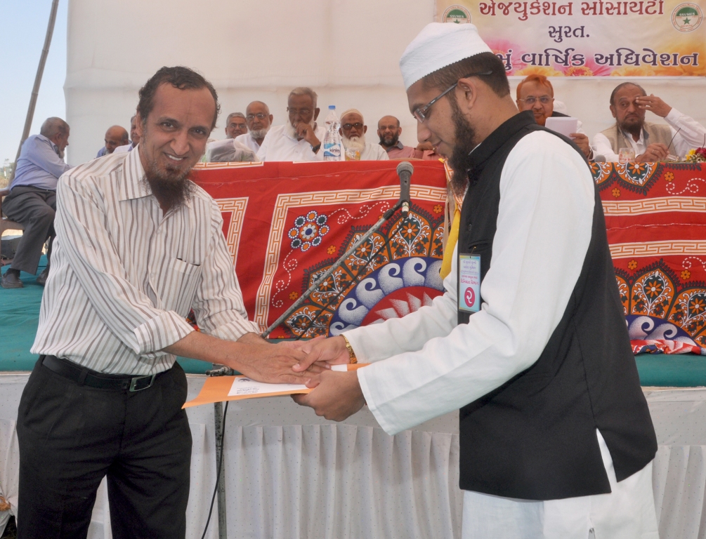 Raeesa Aziz Manga (Babubhai Patel) received cash reward and cerificate form Mr.Yusuf Dawji Patel (U.K.) |