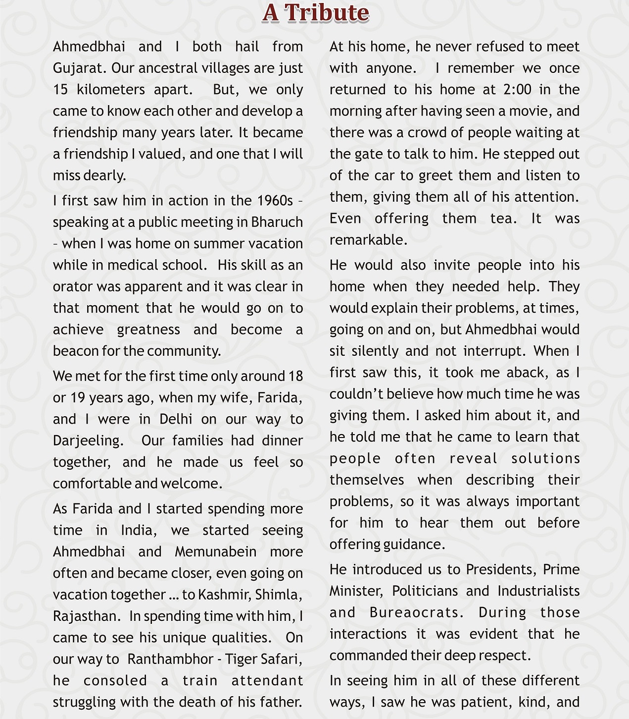 Trbute from Dr. Yakub Gangat and Mrs. Farida Gangat