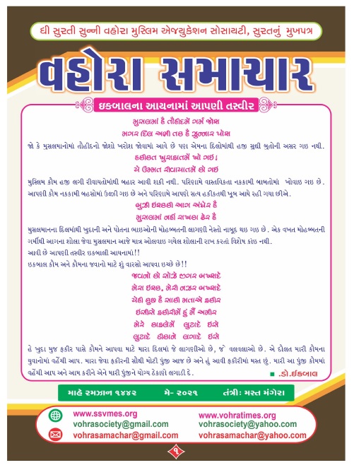 We express our co-hearted gratitude to our Philanthropists donors from all over the WORLD for their generous charities to THE SURATEE SUNNI VOHRA MUSLIM EDUCATION SOCEITY, SURAT. Our humble and kind request to all our generous donors and well wisher to continue your precious donation to the society in the HOLY MONTH of RAMADAN 2021. In Sha Allah.