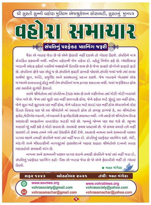 DEATH (INNALILLAH) : Amir-E-Tablig Jamat and representative of U.K. markaz Janab Rashid Ibrahim Aswat Lajporwala, Zubedabahen Gulam Lorgat Aliporwala and Hafiz Ismail Muhammad Lunat Aliporwala passed away at Wembley-London.